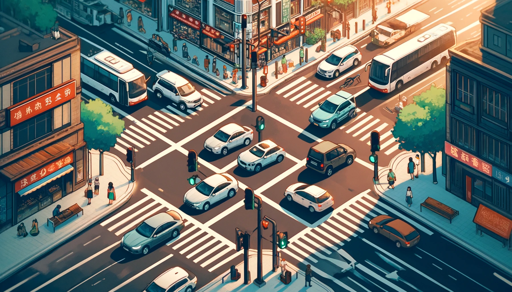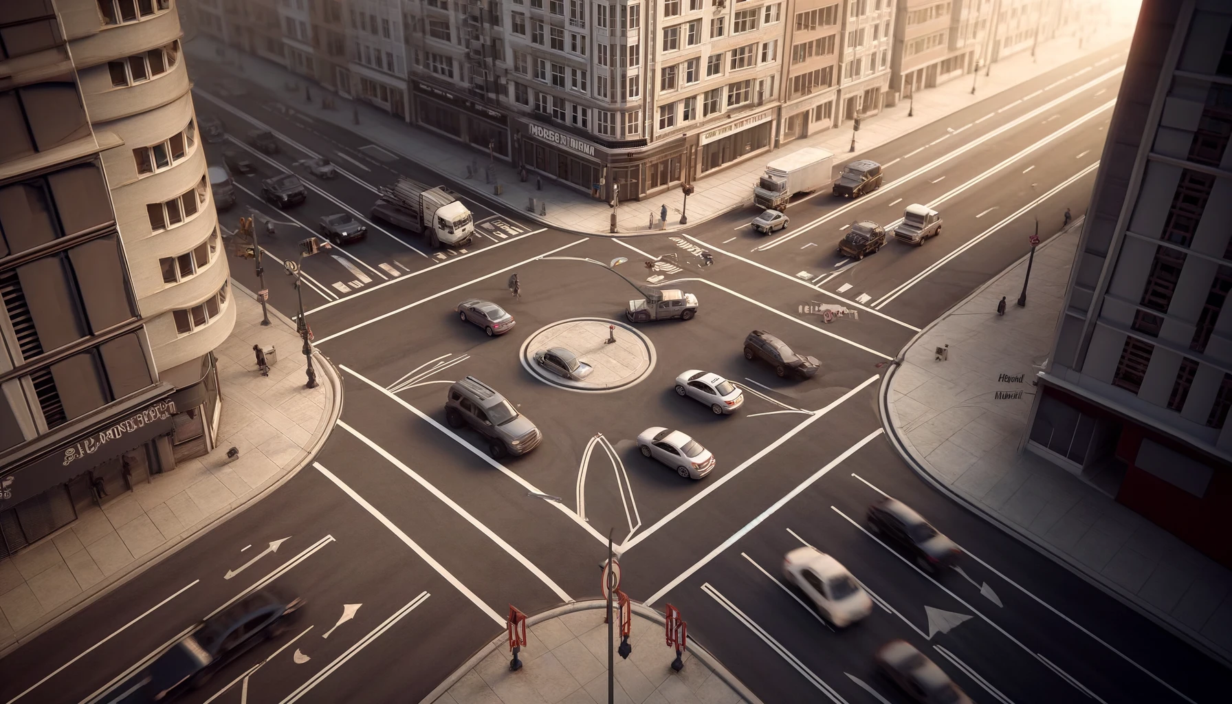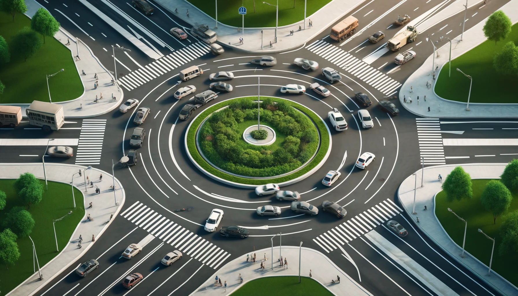 An optimal intersection design ensures smooth traffic flow and safety for both pedestrians and vehicles. Key design elements include: