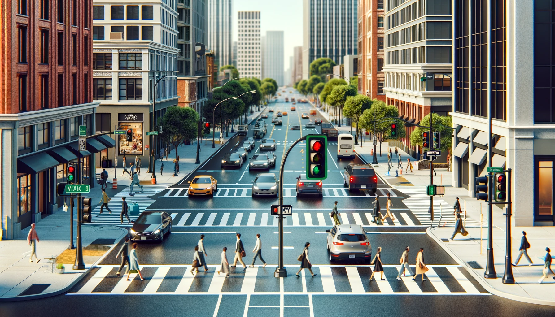 Pedestrian crosswalks are often located at intersections, especially in metropolitan areas. Drivers must be vigilant to prevent pedestrian-related accidents.