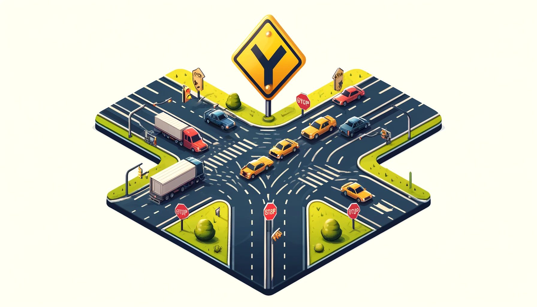 At a Y intersection, roads meet and merge onto a highway, forming a Y shape. There are two types of Y intersections: