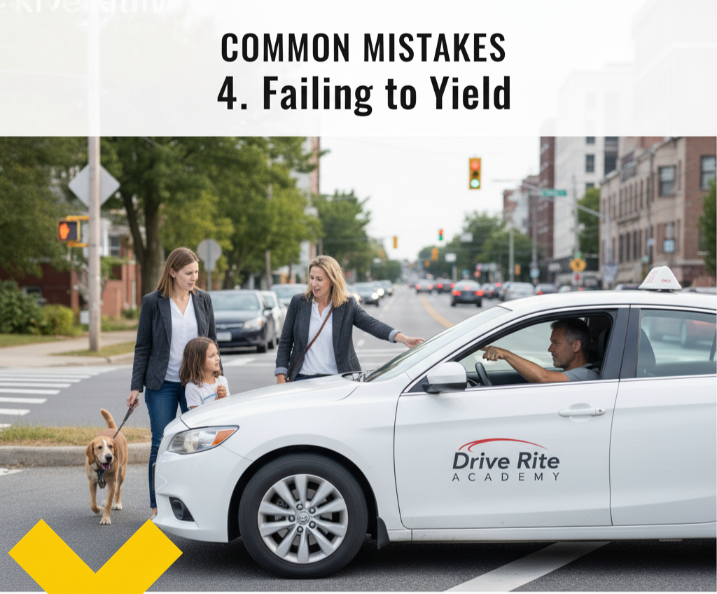 Failing to yield the right of way is another common mistake that can result in an automatic failure of your road test. Whether you’re turning at an intersection or approaching a pedestrian crosswalk, it’s essential to know when to yield to other drivers or pedestrians.