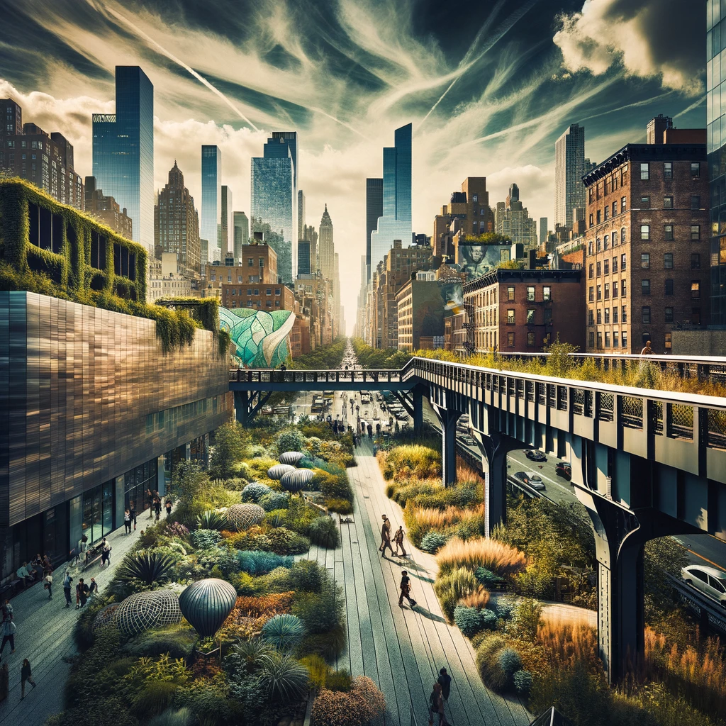 The High Line is a modern marvel of urban revitalization. This elevated linear park was built on a historic freight rail line and runs from Gansevoort Street in the Meatpacking District to West 34th Street. It features lush horticulture, contemporary art installations, and spectacular views of the city's architecture and the Hudson River.